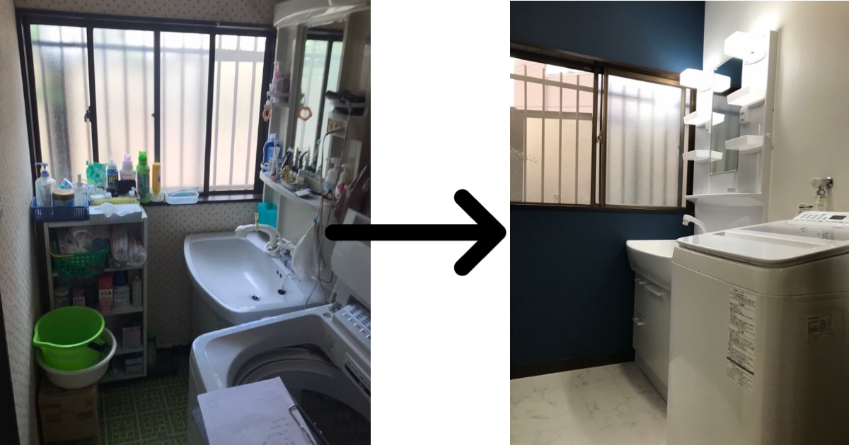 最初は、洗面所が汚いから綺麗にしたいとのご依頼でした。お話をお伺いしている中で冬に寒いと言われたので断熱のお話を致しました。後からやっておけば良かった。と思われてからだと費用も時間も沢山掛かってしまうので今回お勧めしました。限られた予算ですので窓の断熱は、次回です。後からでも簡単に出来ますので、先ずは天井、壁、床の断熱を体感して頂きました。仕上りはお客様の好きな色をチョイスしてスッキリと綺麗に見える様にしました。